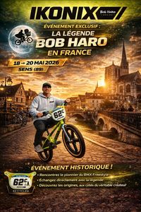 Câest un rendez-vous sans prĂ©cĂ©dent pour la communautĂ© BMX et les passionnĂ©s de culture urbaine. 62CYCLES et IKONIX ont lâimmense honneur de vous annoncer la venue exceptionnelle de Bob Haro en France pour une tournĂ©e exclusive.