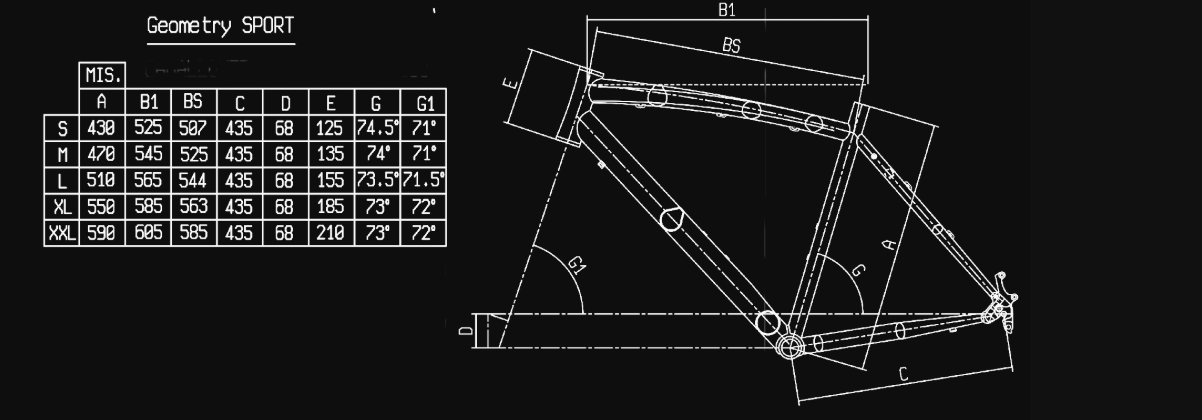Disque C-Sport en aluminium, 700C, ancien diamètre 135 mm, passage de câbles intégré, soudures lisses, douille de direction 1,1/8" (tube inférieur semi-intégré et tube supérieur). Tube de selle 31,6 mm, dimensions : 43, 47, 51, 55 et 59 cm.